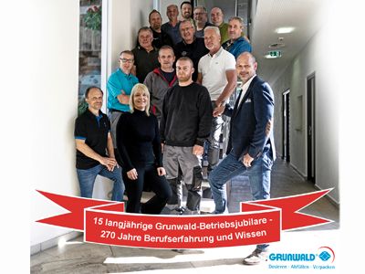 Von den über 200 Grunwald-Mitarbeiterinnen und Mitarbeitern haben im zurückliegenden Jahr 15 langjährig Beschäftigte ihr Betriebsjubiläum gefeiert. Herzlichen Dank an unsere engagierten und qualifizierten Mitarbeiter für ihre langjährige Treue zu Grunwald, die in all den Jahren mit ihren Ideen, mit ihrer Kompetenz und Leidenschaft die Zukunft von Grunwald mitgestalten und sich für unsere Kunden einsetzen. Wir sind stolz, euch in unseren Reihen zu wissen.