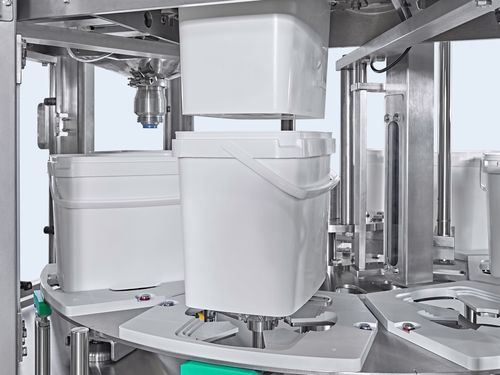Die vollautomatische Eimerabfüllanlage ROTARY XL bietet kompakte Lösungen mit einem überragenden Preis-/ Leistungsverhältnis.