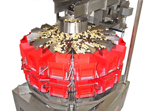 Integration einer Mehrkopfwaage zur Abfüllung von Nüssen, Müsli Süßwaren oder ähnlichem.